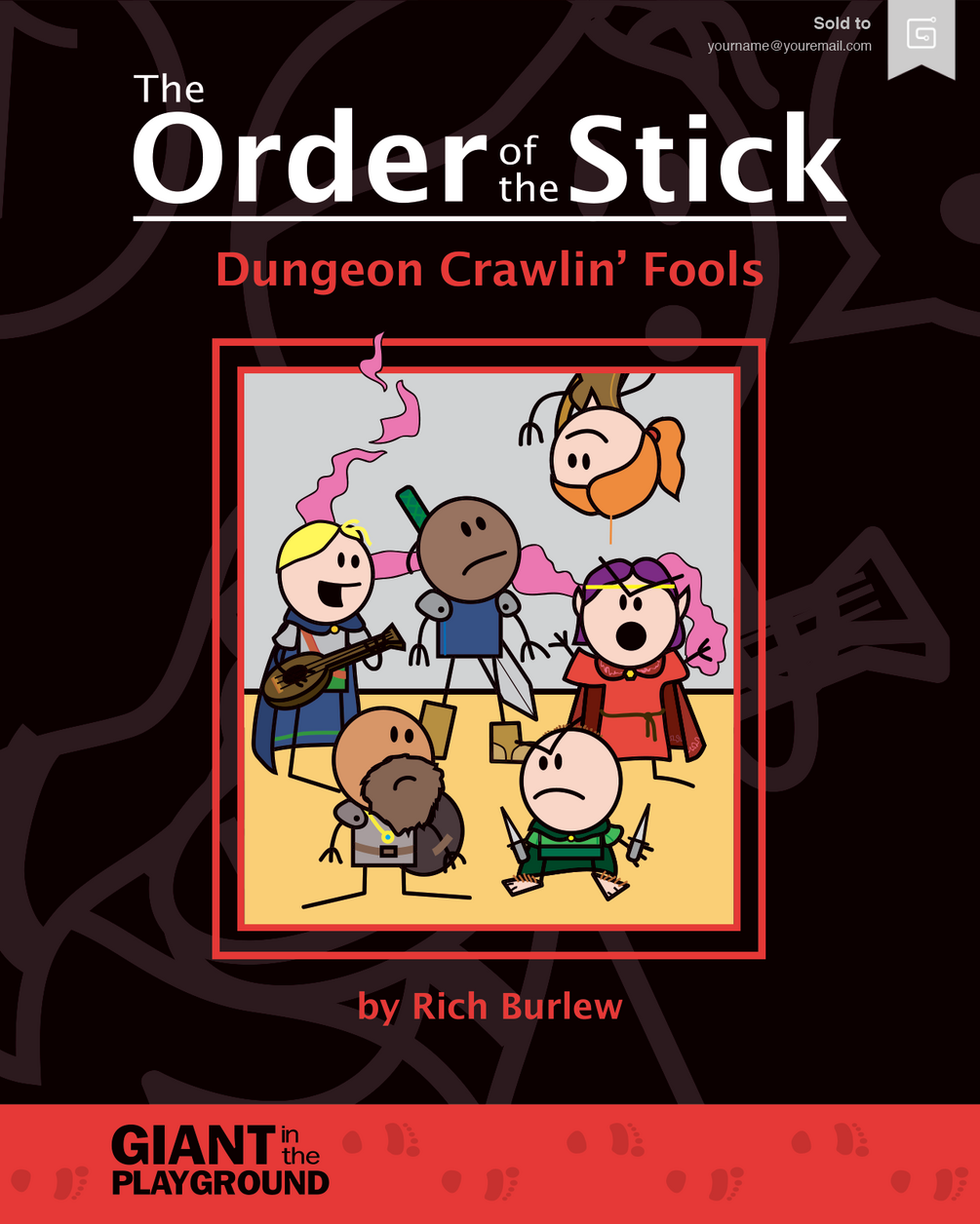 The Order of the Stick begins here! This first book contains the earliest strips in the popular stick figure fantasy-comedy-gaming comic series. Meet a band of six theoretically-heroic adventurers who range in effectiveness from "incredibly poor" all the way up to "slightly less poor". Laugh along they brave the dangers of the lich Xykon's dungeon and a now-obsolete rule system in this first volume of fantasy-comedy from cartoonist Rich Burlew.